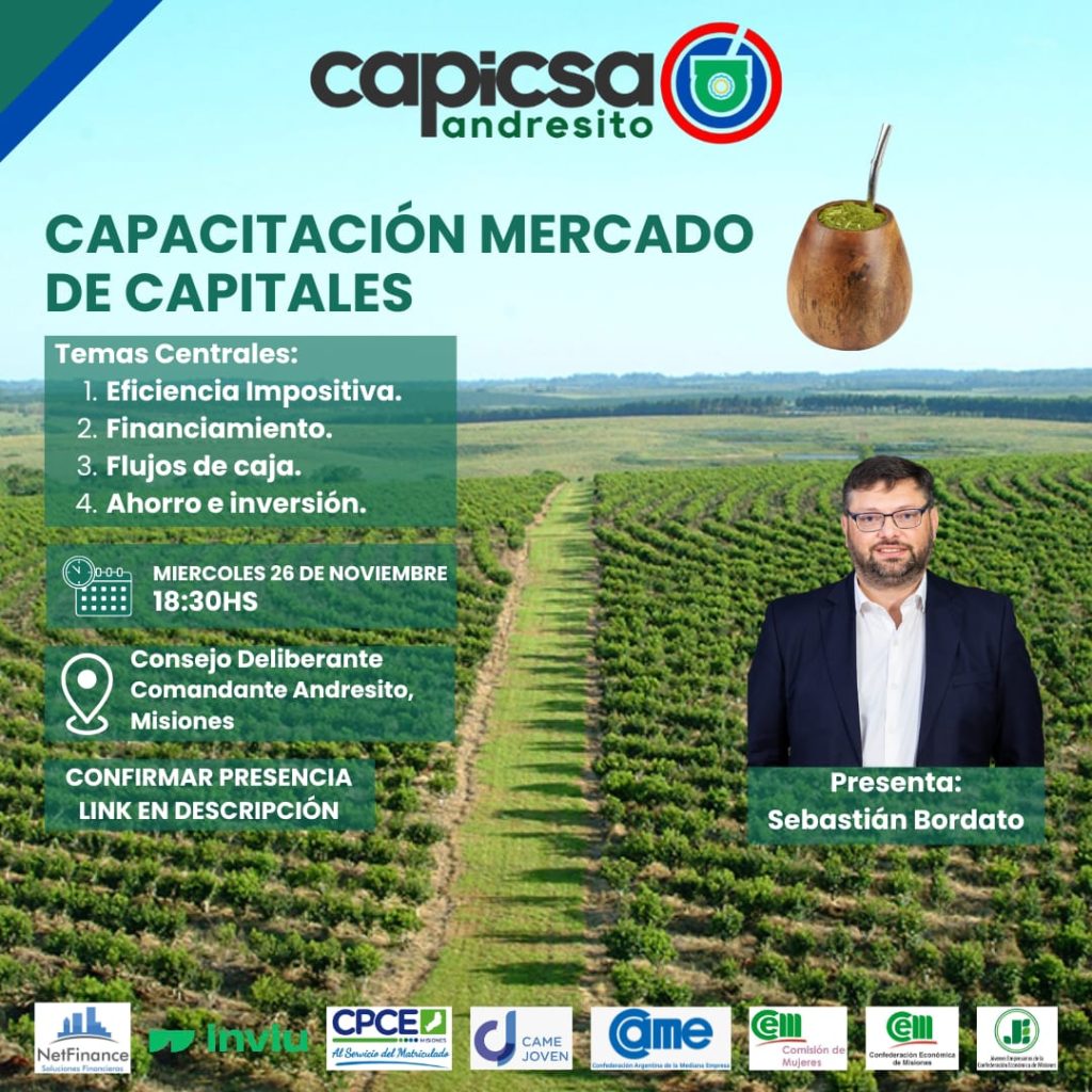 La capacitación estará a cargo de Sebastián Bordato, director comercial de NetFinance, quien presentará las principales alternativas del mercado de capitales aplicables al sector productivo local. La iniciativa surge como respuesta a una necesidad concreta de la región: acceder a instrumentos que permitan financiar proyectos sin depender exclusivamente del flujo operativo o del crédito tradicional.
